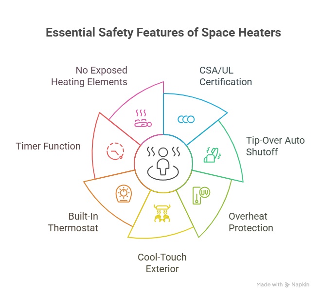 - CSA or UL certification: Mandatory in Canada, this shows the heater meets national safety standards.