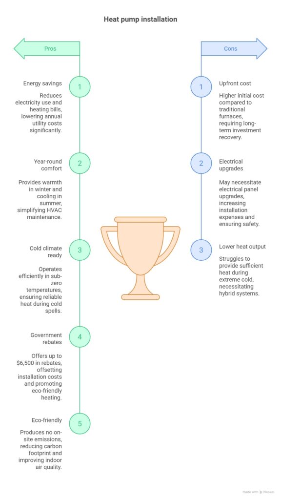 Installing a heat pump often costs more upfront than a traditional furnace. However, with government rebates and long-term energy savings, many Ontario homeowners recover that investment in just a few years.