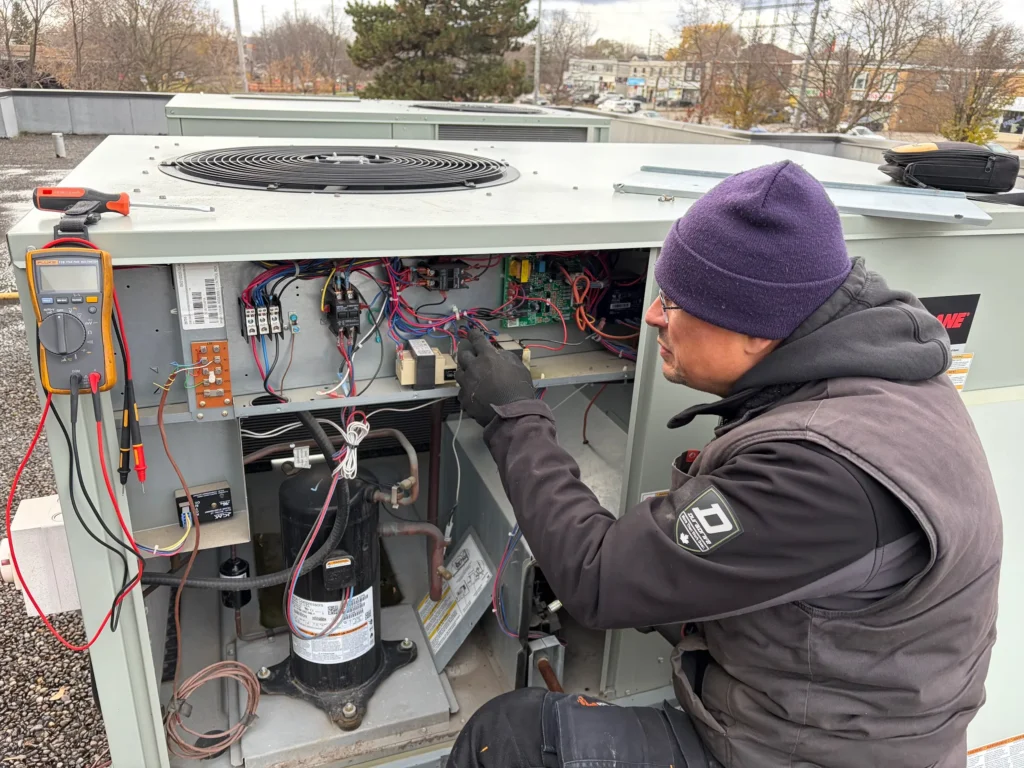 Commercial rooftop units work hard in Ontario winters — component failure is common.
